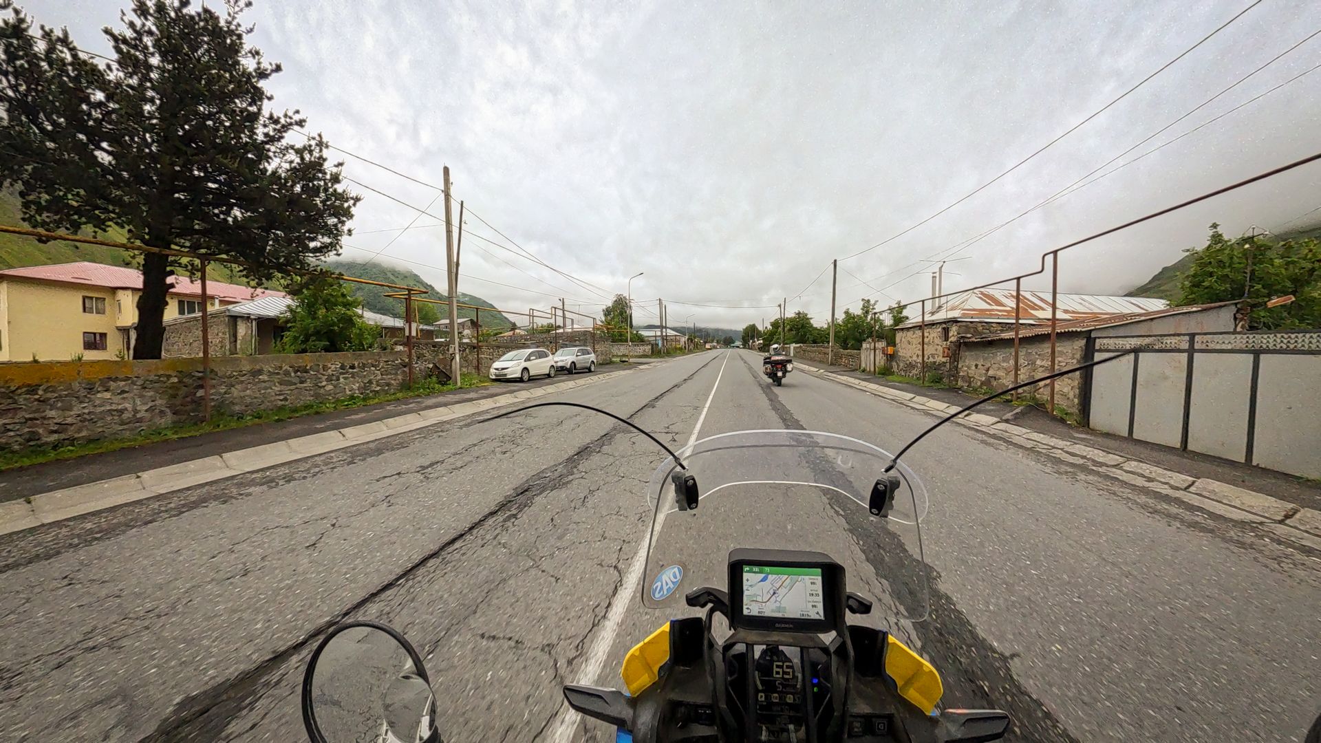 A terv az volt, hogy korán a szállásra érünk és a 3 célpont közül az egyiket még aznap útba ejtjük: orosz hadiút, Kistani tornyok és Omalo. Ezek közül a hadiút volt egyedül aszfaltos, így ez maradt mára. 120km volt az orosz határ, a leírások alapján 3-4 óra is lehet, mert nagyon nagy a forgalom, nem lehet előzgetni és csak lassan lehet haladni, és nem is a legjobb minőségű. Egy nagyobb eső elmoshatja az utat és akkor ott maradsz. Vagy oda se érsz.