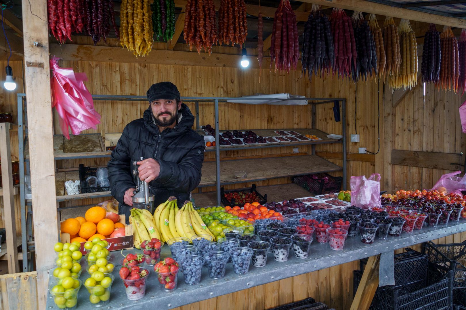 A szállás egy frissen nyílt borászatnál volt, 2 éjszaka, mosással. Remek konyhájuk volt, főztek nekünk jó, kis, grúz vacsit. Kaptunk finom bort is és kicsit beszélgettünk a szállásadóval meg a többi vendéggel. Közben a hajszárító küzdött a vizes bakancsokkal….
